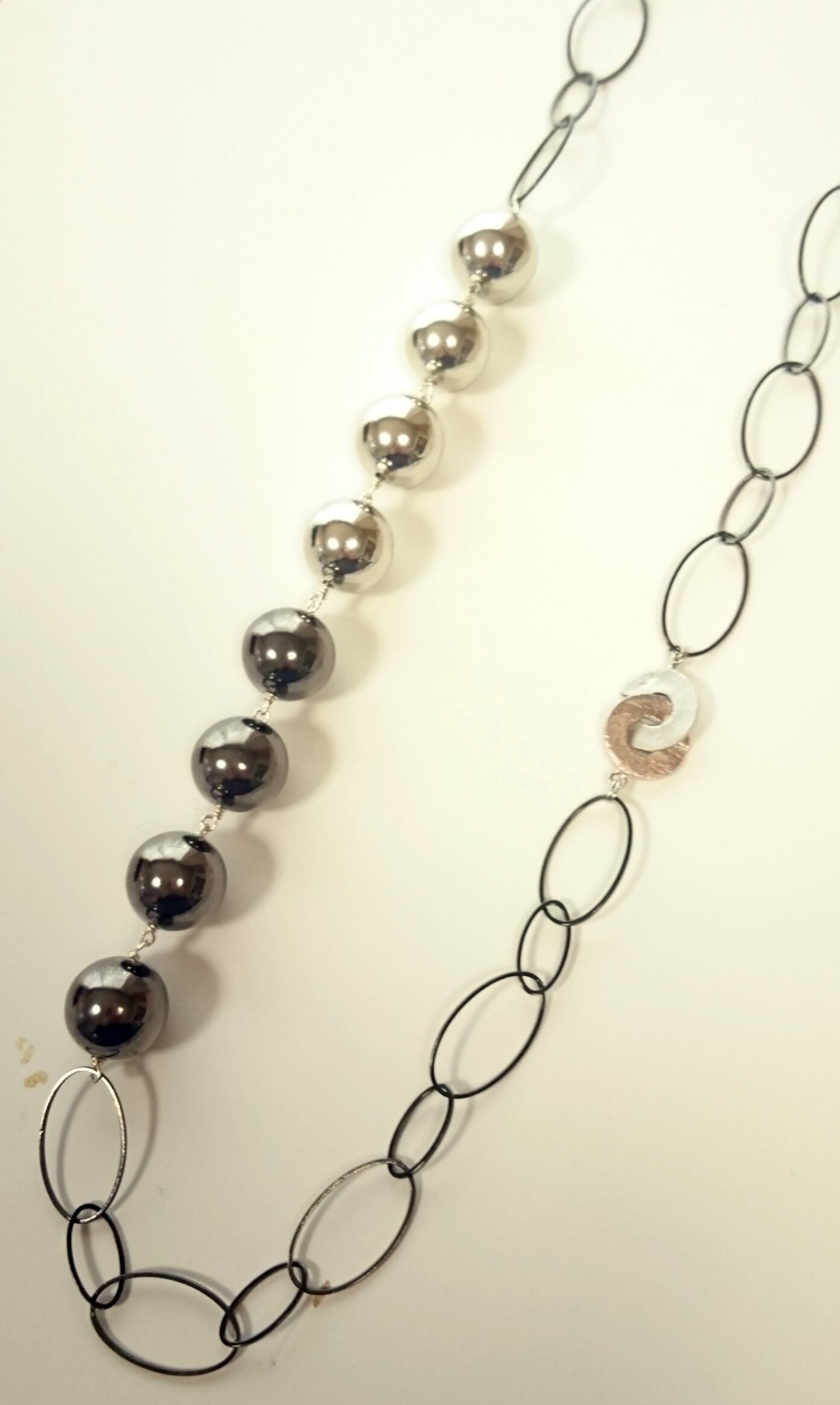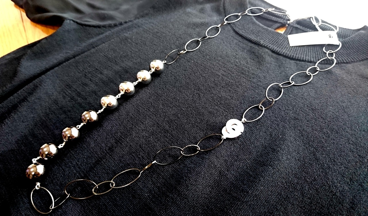 ブラックとシルバーの銅玉をつかった